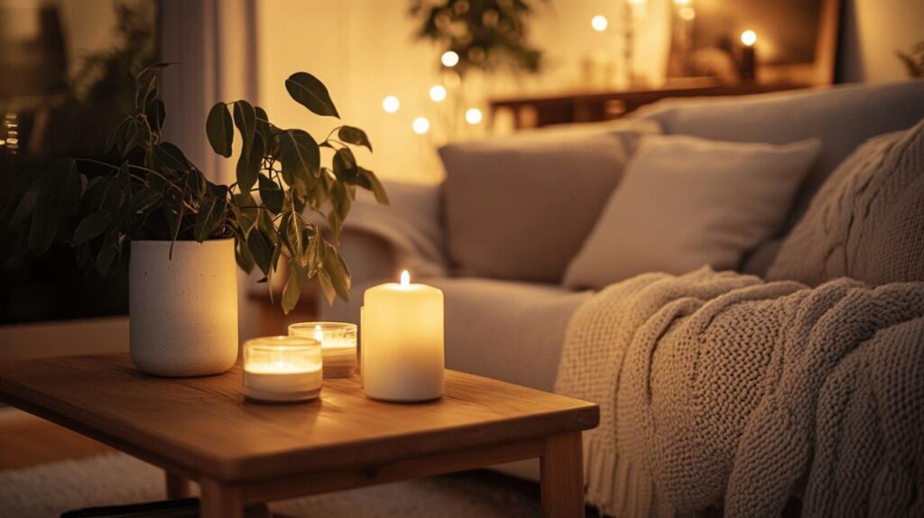 Les Danois accordent une place centrale aux bougies dans leur décoration, avec une consommation annuelle de 6 kg de cire par personne. Les diffuseurs et bougies naturelles s’intègrent harmonieusement aux intérieurs minimalistes scandinaves. Ils complètent l’éclairage doux des guirlandes lumineuses et participent à la création d’une ambiance paisible. Ces éléments s’associent idéalement aux accessoires douillets comme les plaids en laine et les coussins moelleux, signature du style Hygge.